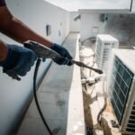 High-pressure jet spray cleaning for both indoor and outdoor units — removes dust, sludge, and improves airflow.