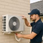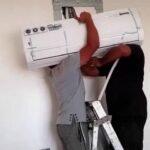 Professional AC installation with perfect leveling, vacuuming, copper connection, and water drainage setup.
